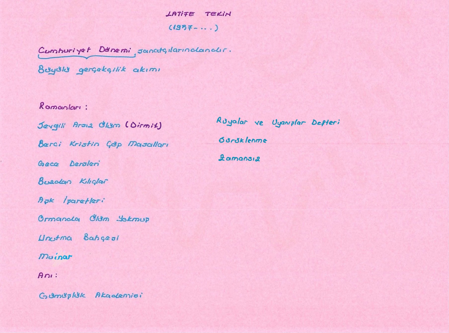 Latife Tekin’in Eserlerini Kurguluyorum