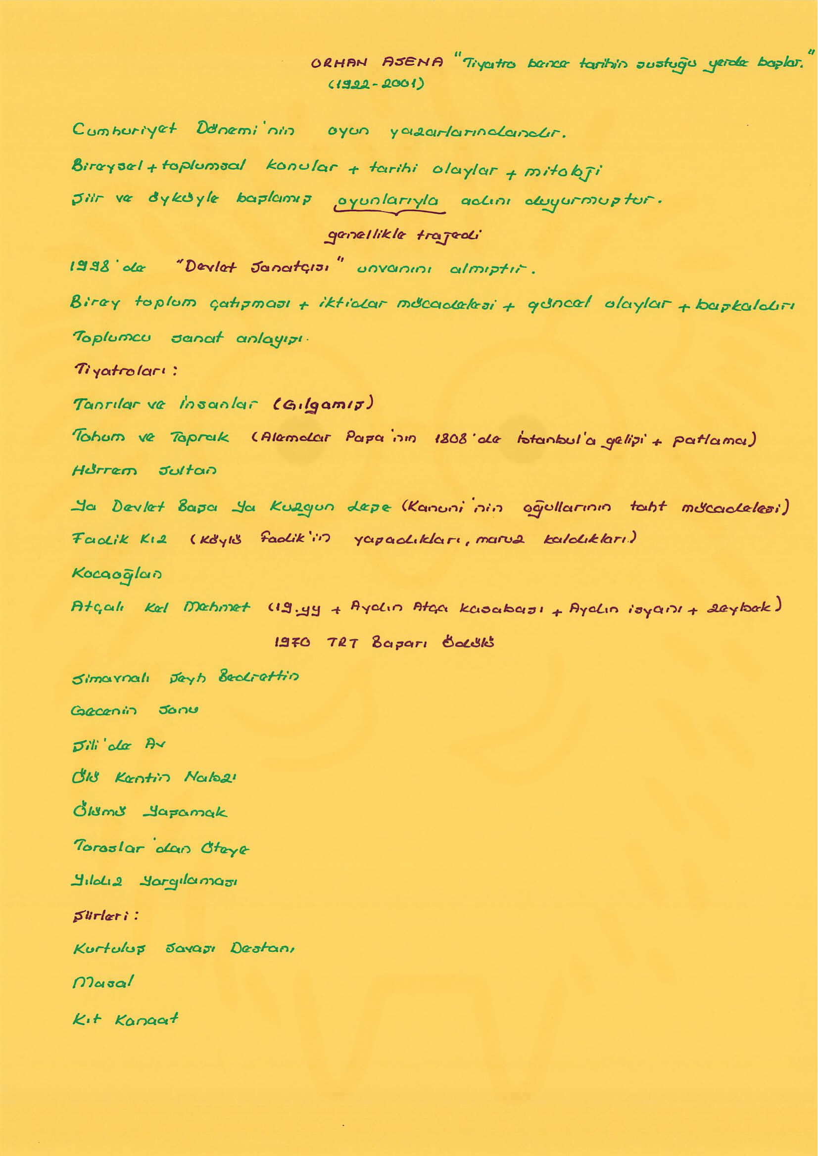 Orhan Asena’nın Eserlerini Kurguluyorum